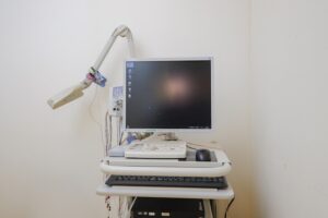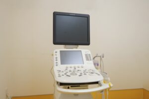 検査の際は着替える必要はありませんが、襟の高くない服装が望ましいです。検査終了後、説明を待ちます。